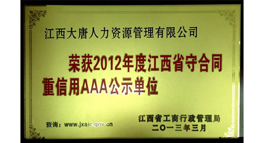 江西省人力資源服務(wù)機(jī)構(gòu)AA級誠信單位