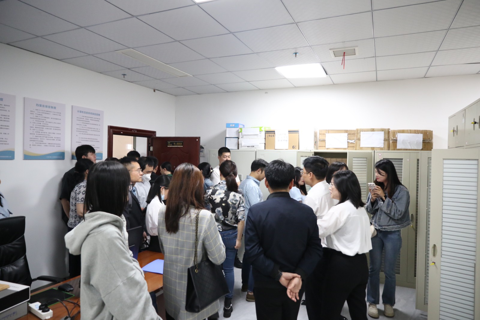 緊接著大家共同參觀了檔案室。余主任充分肯定了學(xué)校在臺賬管理方面的規(guī)范和嚴(yán)謹(jǐn)。