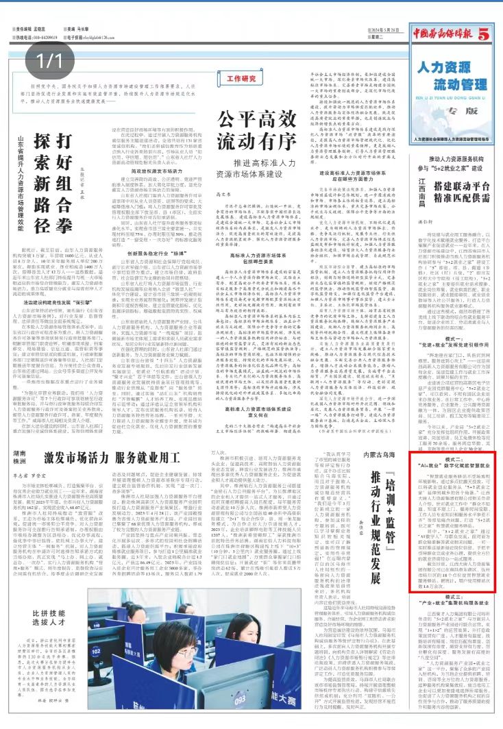 5月28日,中國(guó)勞動(dòng)保障報(bào)刊發(fā)江西大唐人力資源集團(tuán)積極參與江西省“5+2就業(yè)之家”建設(shè),首創(chuàng)的“AI+就業(yè)”數(shù)字化賦能智慧就業(yè)模式得到認(rèn)可和肯定。