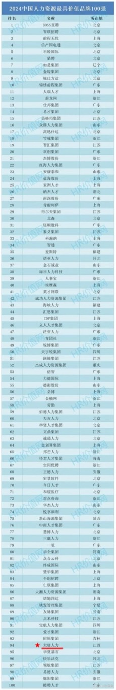 大唐人力集團(tuán)已連續(xù)兩年評為“中國人力資源最具價值品牌100強(qiáng)”企業(yè),作為江西省唯一上榜企業(yè),也象征著其品牌影響力及行業(yè)地位的進(jìn)一步鞏固。